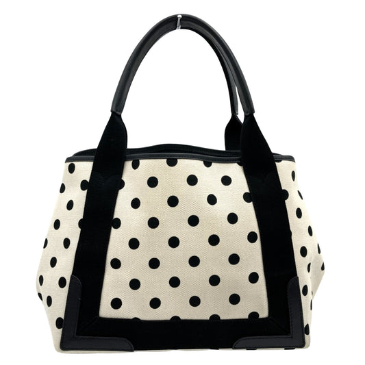 BALENCIAGA Navy Cabas S Hand Bag Canvas White Black 339933 Auth yk12669