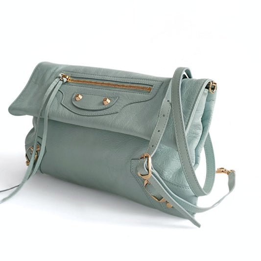 BALENCIAGA Giant Clutch with shoulder strap in aqua green leather
