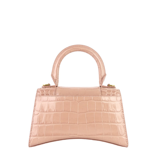 BALENCIAGA Hourglass XS Croc Embossed Leather Top Handle Bag