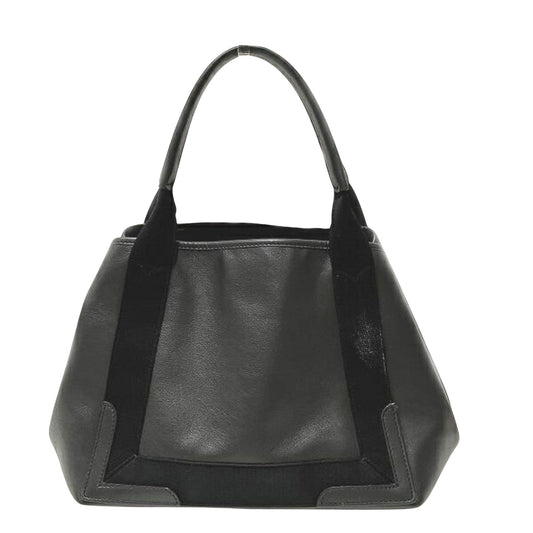 BALENCIAGA Hand Bag Canvas Beige Black Auth bs17795
