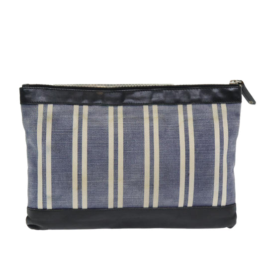 BALENCIAGA Clutch Bag Canvas Leather Blue Black Silver 420407 Auth bs16618