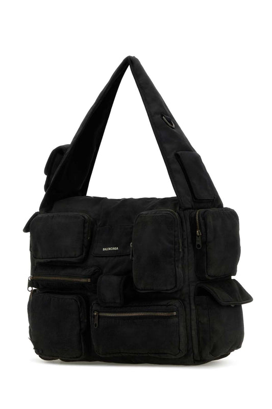 Balenciaga Men Black Canvas Large Superbusy Shoulder Bag