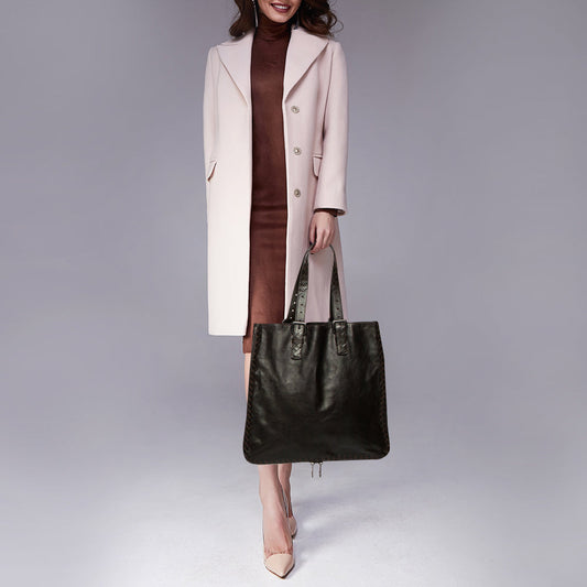 Bottega Veneta Dark Brown Intrecciato Trim Leather Expandable Tote