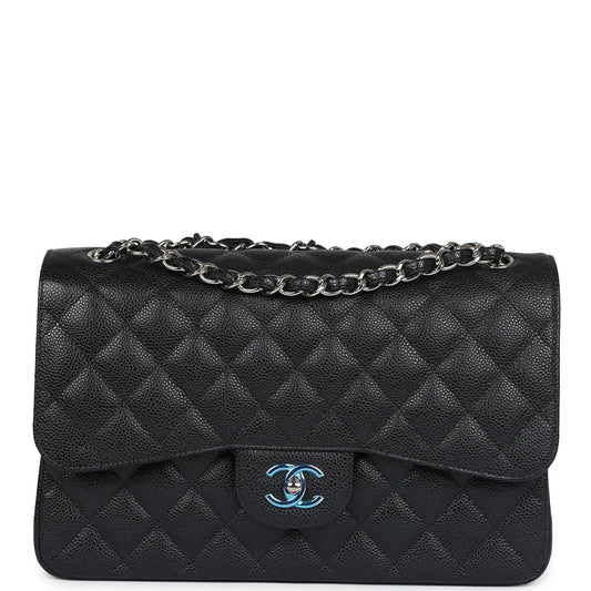 Chanel Jumbo Classic Double Flap Bag Black Caviar Silver Hardware