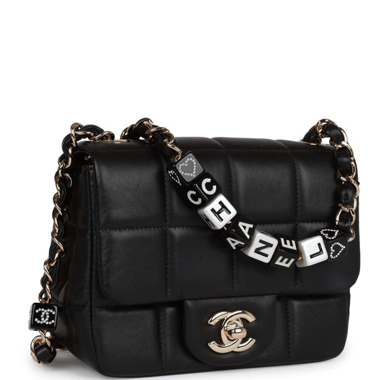 Chanel Monaco Mini Square Flap Bag Black Lambskin Light Gold Hardware