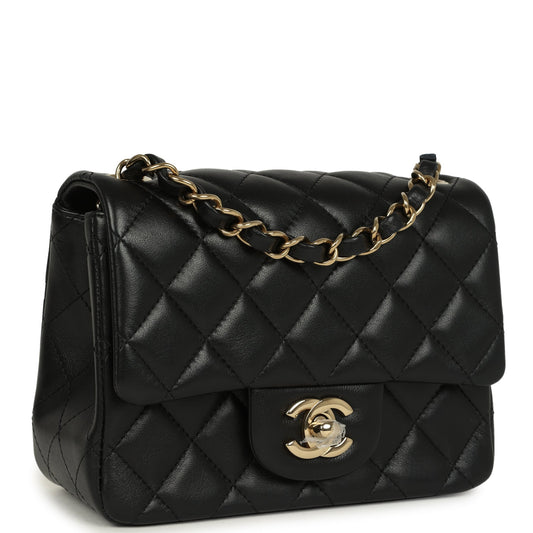 Chanel Mini Classic Square Flap Bag Black Lambskin Light Gold Hardware
