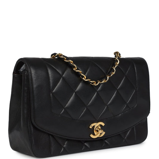 Vintage Chanel Small Diana Flap Bag Black Lambskin Gold Hardware