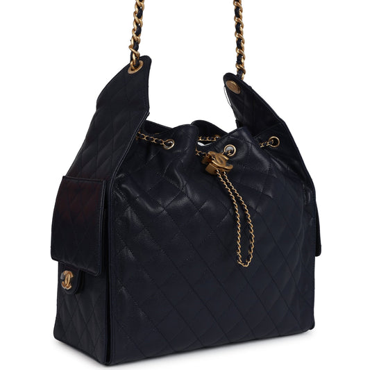 Chanel Medium 25 Hobo Bag Dark Navy Caviar Antique Gold Hardware