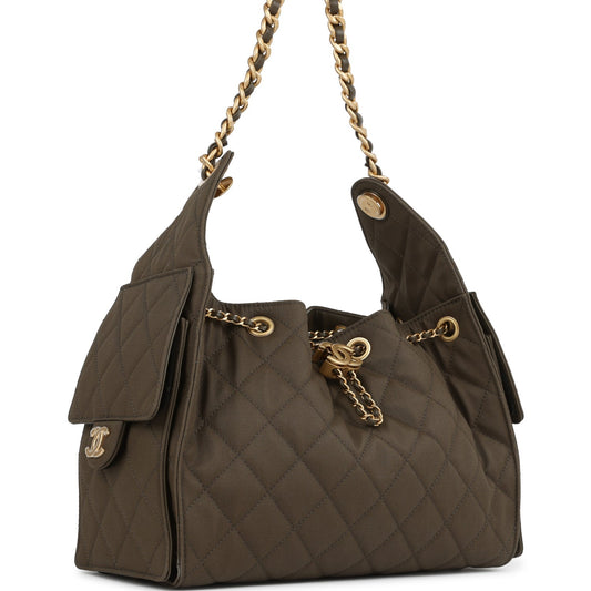 Chanel Small 25 Hobo Bag Khaki Caviar Antique Gold Hardware