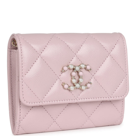 Chanel Mini Crossbody Pearl Wallet Pink Caviar Light Gold Hardware