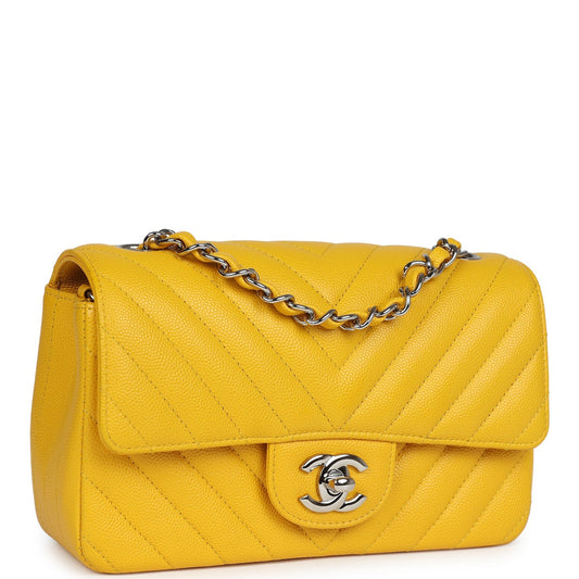 Chanel Mini Rectangular Flap Yellow Chevron Caviar Silver Hardware
