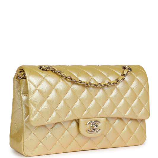 Chanel Medium Classic Double Flap Bag Yellow Iridescent Caviar Light Gold Hardware