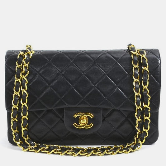 Chanel Black Lambskin Leather Small Classic Double Flap Shoulder Bags