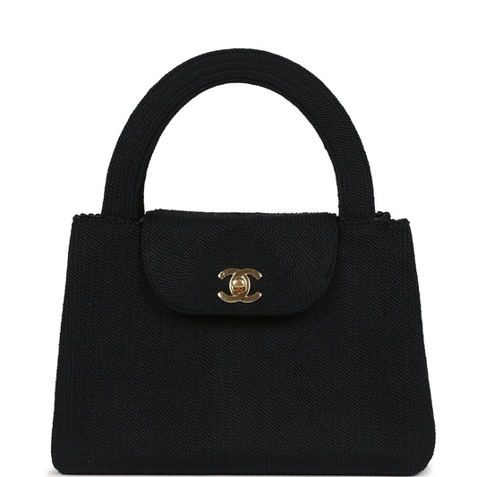 Vintage Chanel Large Kelly Rope Black Woven Gold Hardware