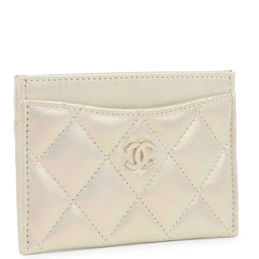Chanel Classic Card Holder Wallet Iridescent Ivory Lambskin Light Gold Hardware