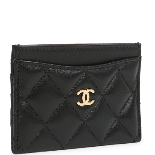 Chanel Classic Card Holder Wallet Black Lambskin Light Gold Hardware