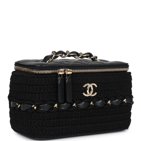 Chanel Small Vanity Case Black Crochet and Lambskin Light Gold Hardware