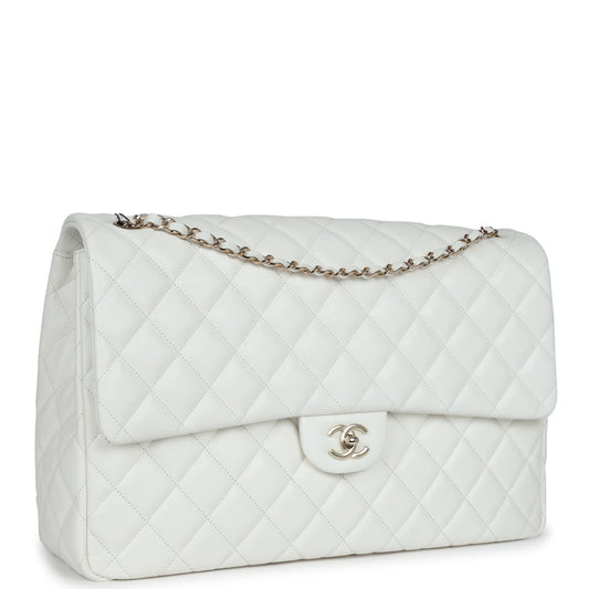 Chanel XXL Flap Bag White Shiny Caviar Light Gold Hardware