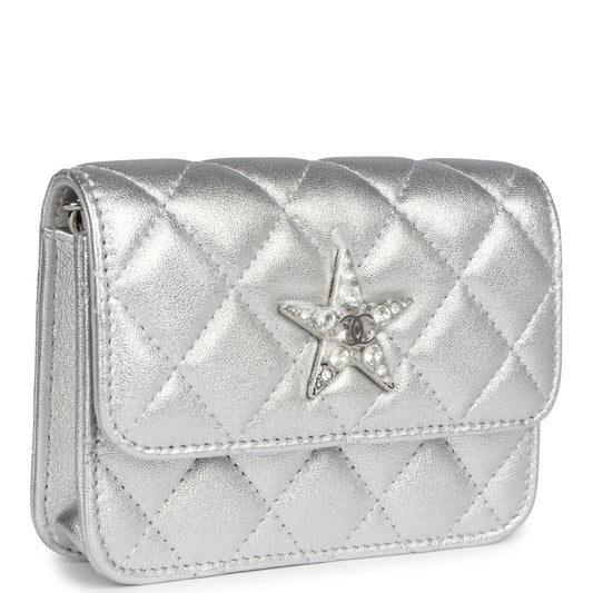 Chanel Crystal CC Walk Of Fame Clutch on Chain Silver Metallic Goatskin Silver Hardware