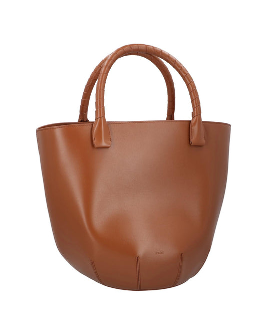 Chloe Woody Small Leather Tote Women Brown | Brown Tote Bags