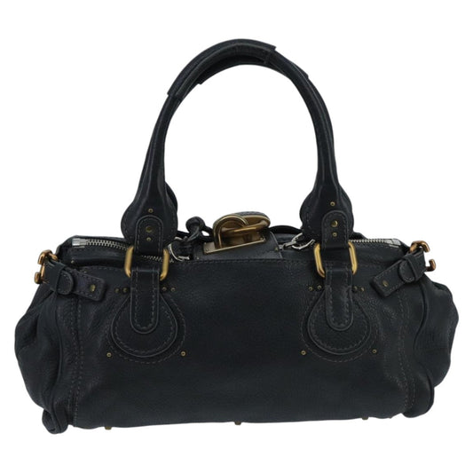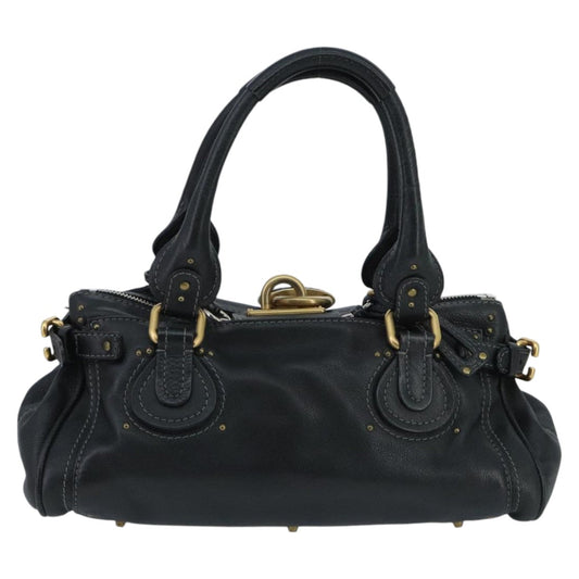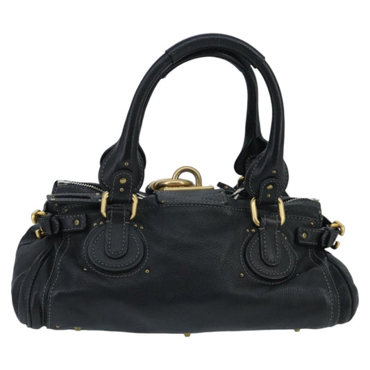 Chloe Paddington Hand Bag Leather Black Gold Silver am7076