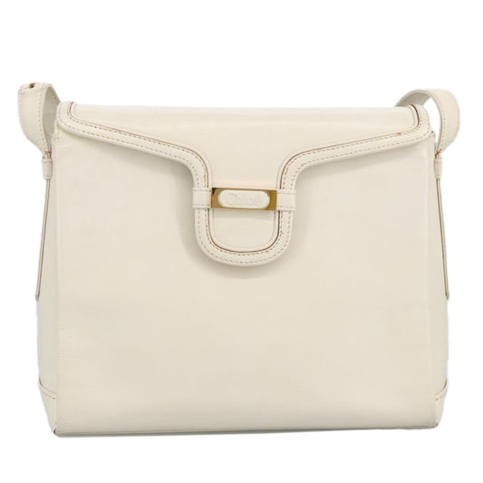 Chloe Shoulder Bag Leather White Gold Silver 96926