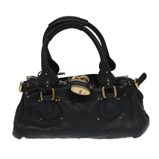 Chloe Paddington Hand Bag Leather Black Gold Silver am7212