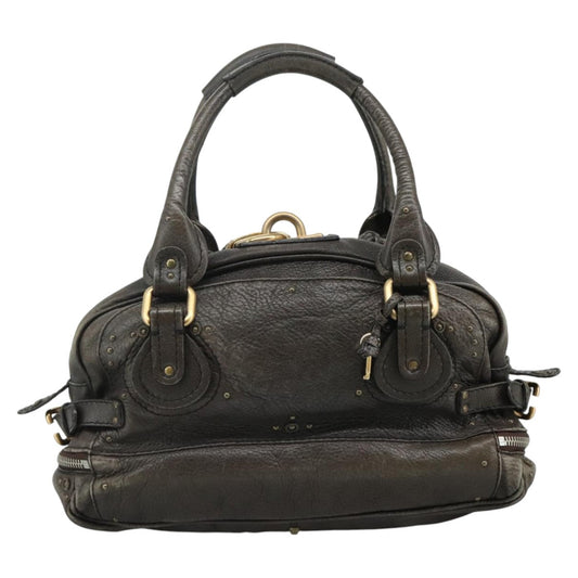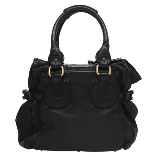 Chloe Paddington Hand Bag Leather Black Silver 112535