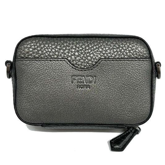 Fendi Leather Mini Crossbody Bag Metallic Gray