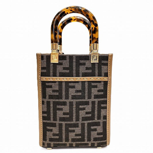 Fendi Zucca Pattern Handbag 7N0121 Brown FF Logo