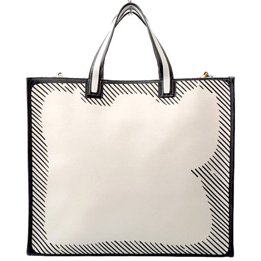 Fendi Canvas 2-Way Tote Shoulder Bag Beige