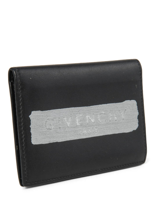 Givenchy Leather Paint Logo Unisex Wallet Black Silver