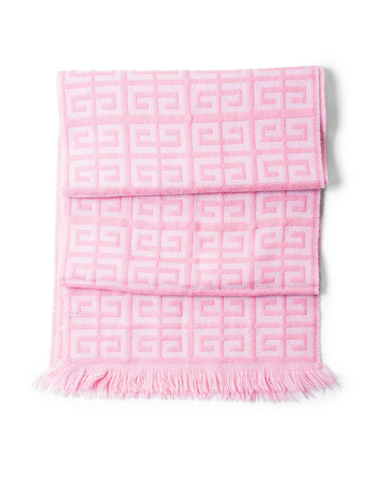 Givenchy Logo Knitted Wool Fringe Scarf Pink