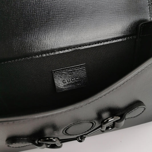 Preloved Gucci 1955 Mini Leather Solid Horsebit Flap Crossbody Bag 250411781143692
