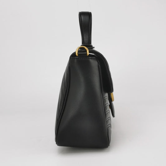 Preloved Gucci GG Marmont Mini Leather Solid V-stitch Quilted Double G Bucket Bag Shoulder Bag Crossbody Bag 250420781157874