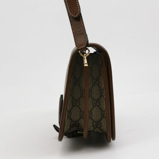 Preloved Gucci 1955 Mini Leather Canvas GG Supreme Horsebit Shoulder Bag 250529781214131