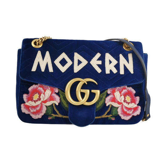 Preloved Gucci GG Marmont Medium Velvet Embroidered GG Logo Shoulder Bag Crossbody Bag 241230781002553