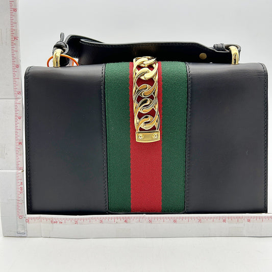 GUCCI Calfskin Small Sylvie Shoulder Bag Black 2504201806