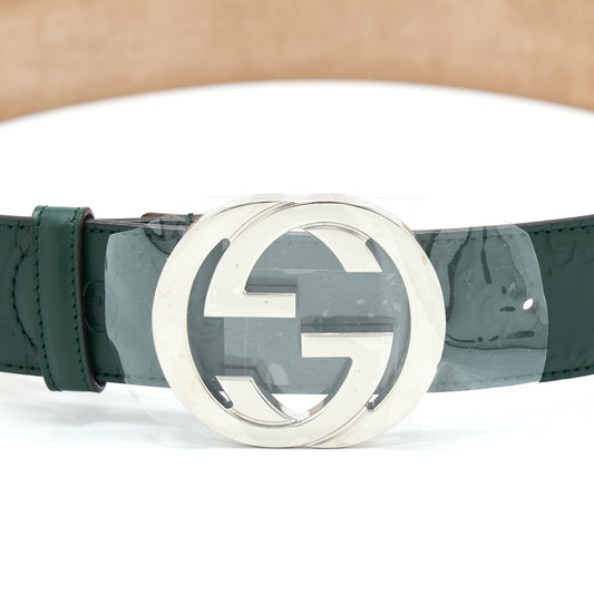 Gucci Size 80 GG Buckle Leather Belt Green SHW