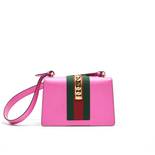 GUCCI SMALL SYLVIE LEATHER BAG PINK