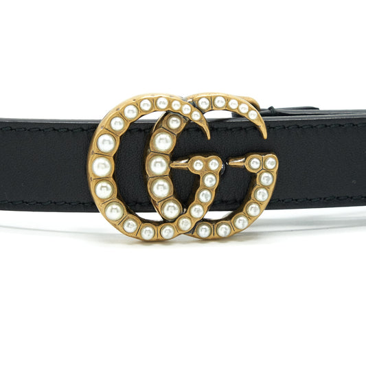 GUCCI Size 80 Leather Belt With Pearl Double G