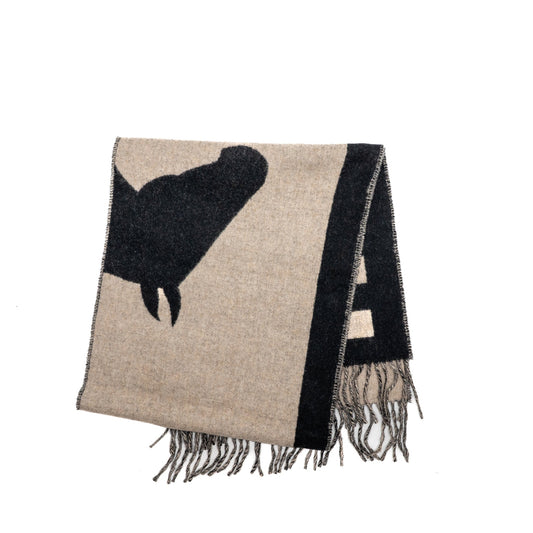 Hermes 30*140cm Echarpe Casaque Love Story Muffler Cashmere Black/Beige Chine