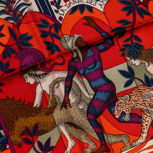 Hermes 90*90cm Silk Scarf La Danse Des Amazones Po/Rouge/Fuchsia/ Mari
