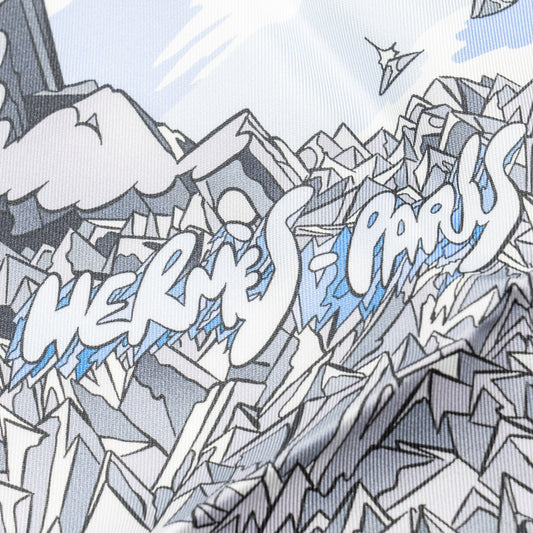 Hermes 90*90 cm silk scarf La Vallee De Cristal Gris/Parme/Menthol