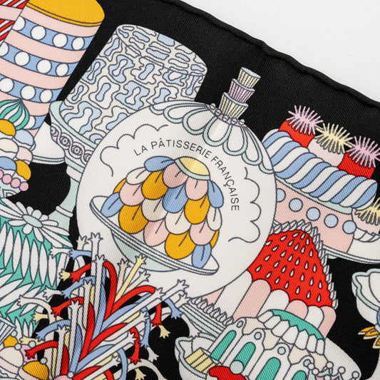 Hermes 45 cm La Patisserie Francaise Scarf Noir/Menthol/Multicolour