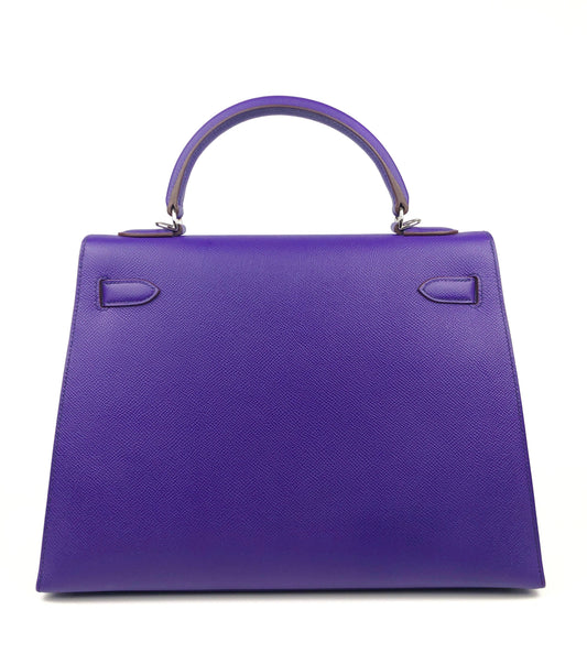 Hermes 32cm Violet Epsom Sellier Kelly w/ Palladium Hardware