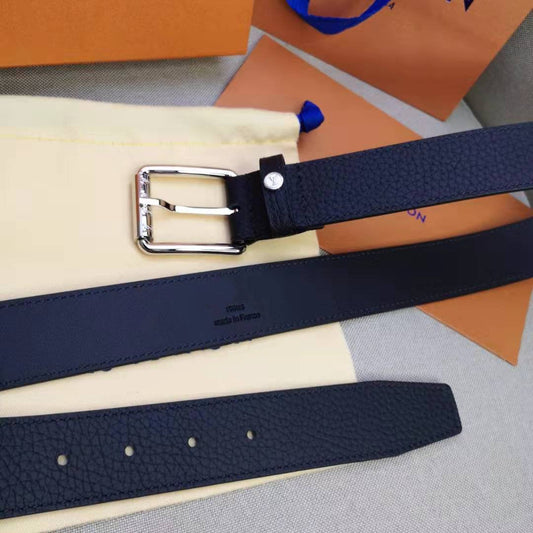 Louis Vuitton MEN'S BELT SQUARE BUCKLE INSTALL BLACK LEATHER 35MM