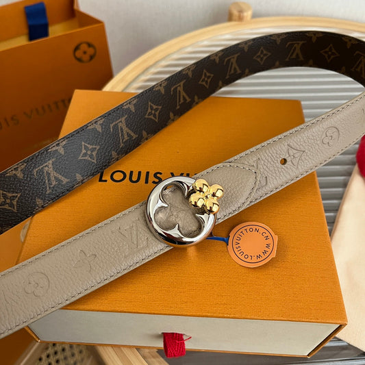 Louis Vuitton Flowergram Round 30mm Reversible Belt Grey Brown Empreinte Calfskin