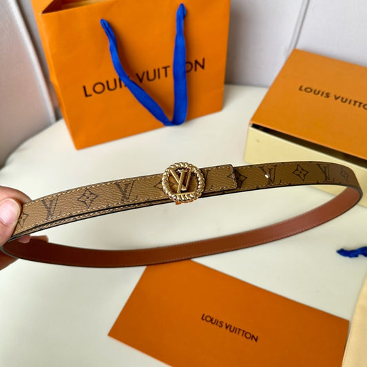 Louis Vuitton Circle Nautical 20mm Reversible Square End Tip Belt Gold Buckle Tan Light Brown lambskin