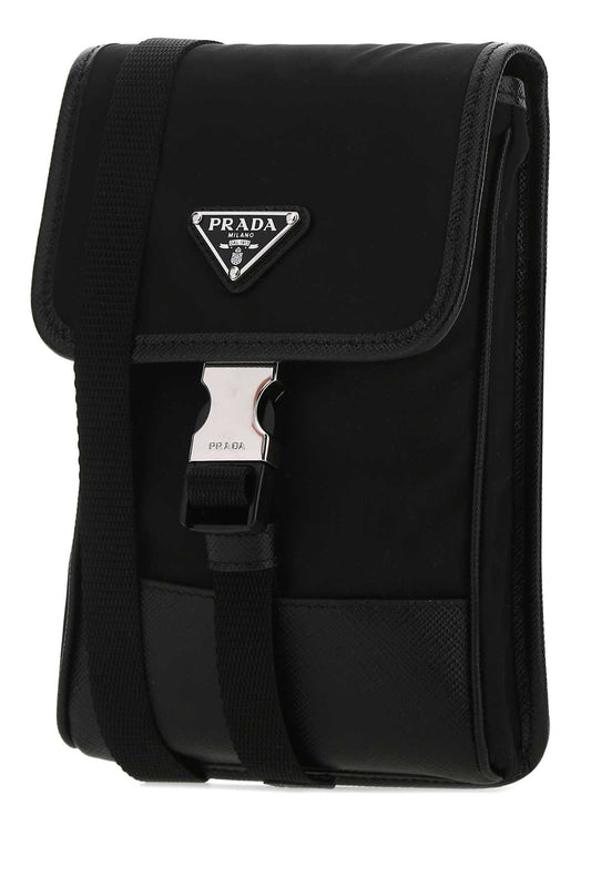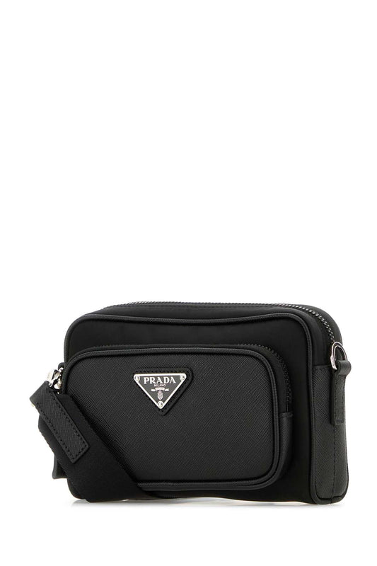 Prada Men Black Re-Nylon And Leather Crossbody Bag